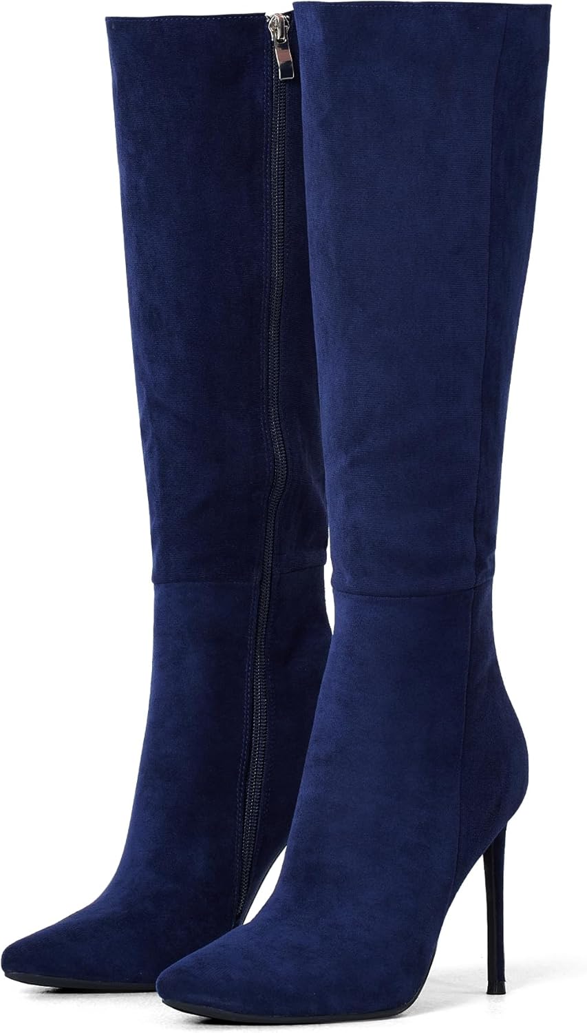 4 inch Women’s Knee High Long Boots, Stiletto Tall Pointed Toe Heeled Boot Leather Suede Comfortable Sexy