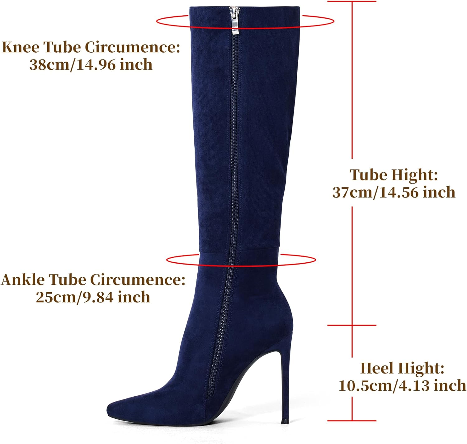 - Classic And Fashion: With a pointy toes and stiletto sculptural heels tall boots, elegant and comfy, elongate your leg curves visually