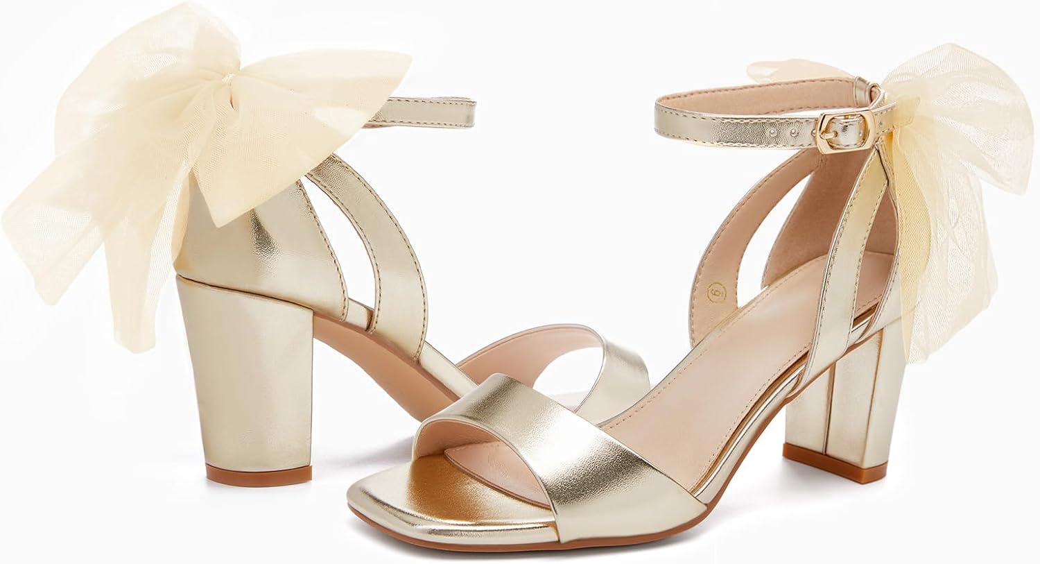 - Features: Women’s bow knot heeled sandals, features an open-toe design and chunky heels for added style and comfort
