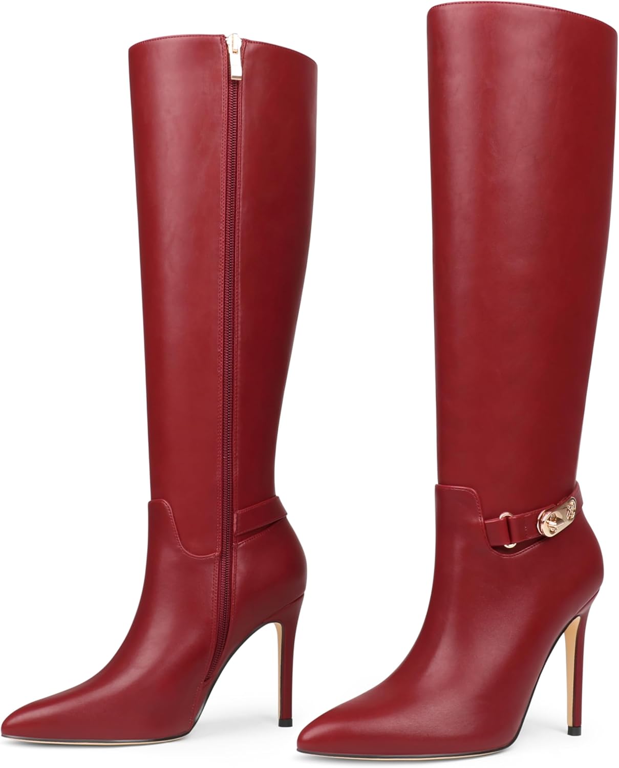 Women’s Knee High Boots Pointed Toe Stiletto Buckle Dress Boots Slouch Zipper Heeled Boots