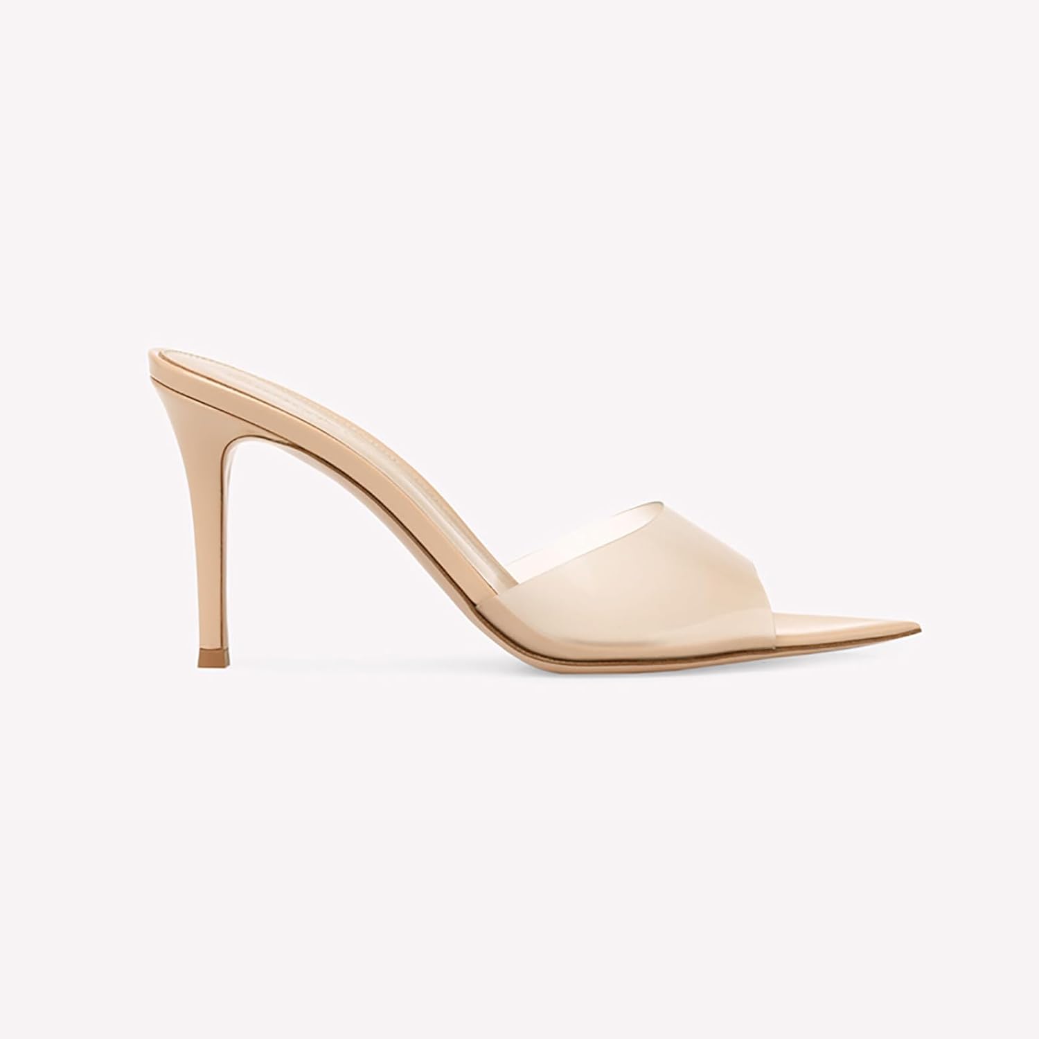 - 1.Material: Patent Leather Upper With Transparent Tpu Straps, More Attractive, Creating An Elegant Look, Wearing These Gorgeous Pointed Toe High Heel Slippers, You Will Be More Charming And Beautiful.